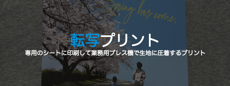 専用の転写フィルムにデザインを印刷し、それを生地に圧着してプリントする方法です。